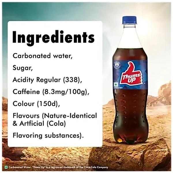 Carbonated Water, Sugar, Acidity Regulator (338), Caffeine, Colour (150d). Contains Permitted Natural Colour & Added Flavours (Natural, Nature Identical Artificial Flavouring Substances), Contains no Fruit